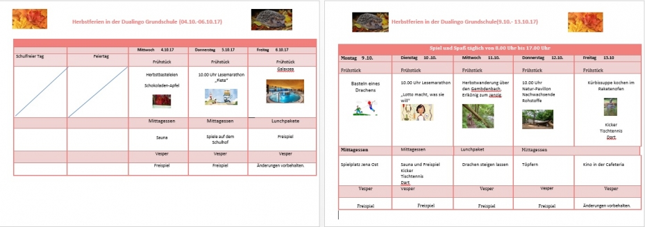 unser Betreuungsteam hat wieder ein buntes Programm für die Herbstferien zusammengestellt. Anmeldungen sind ab sofort möglich.
