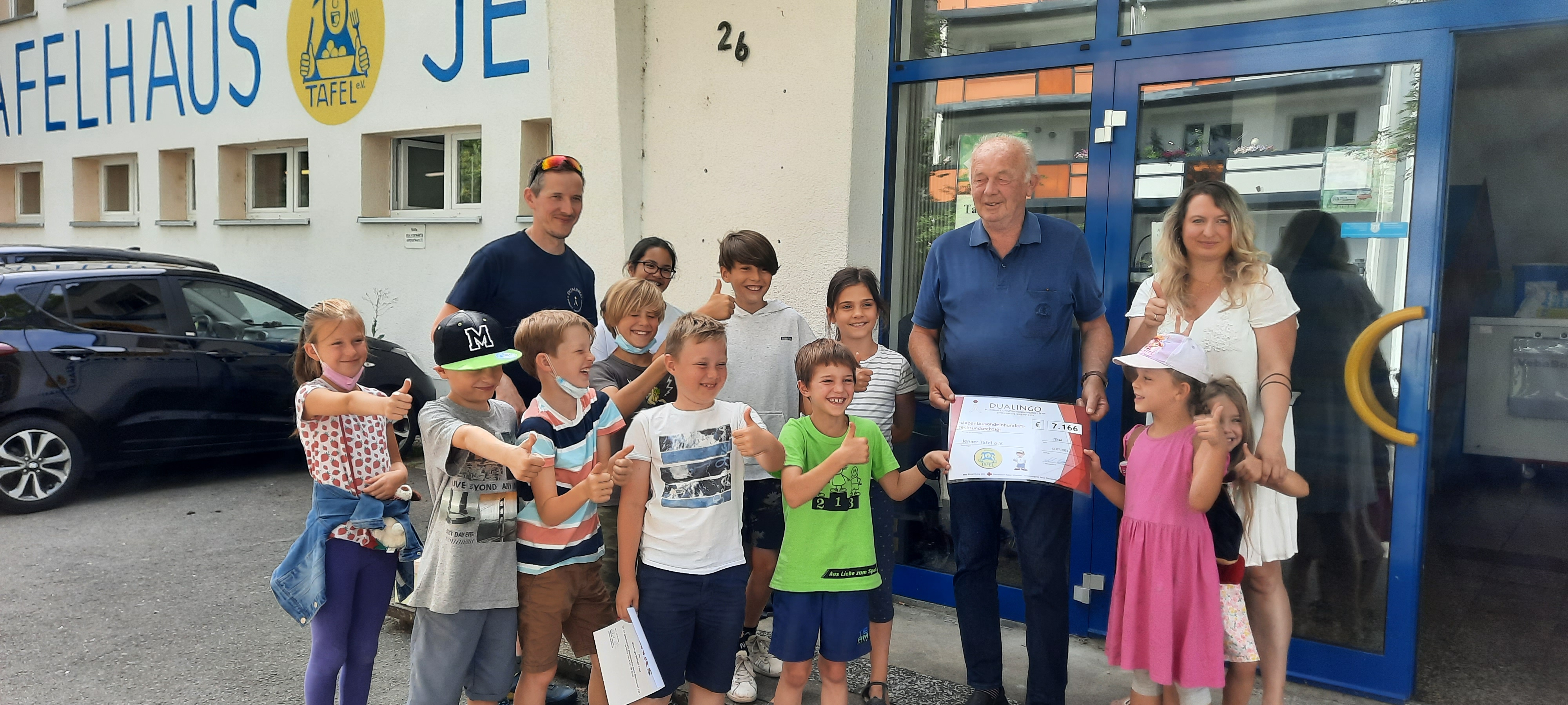 Auch kleine Menschen können Großes bewirken. Das haben die DUALINGO-Grundschüler und -Kindergartenkinder mit ihrem gemeinsamen Benefizlauf wieder einmal bewiesen und einen neuen Rekord in Höhe von 7 166 Euro Spendengeldern aufgestellt. Am Mittwoch in der letzten Schulwoche überreichten wir den Spendenscheck an die Jenaer Tafel.